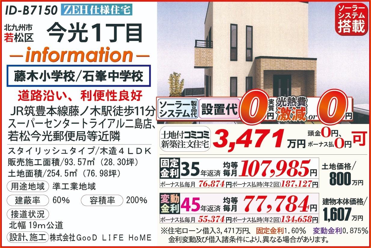 B7150今光1丁目、ZEH太陽光202511 こだわり条件 エリア 価格 校区 新エネルギーシステム住宅 北九州市若松区 3,471万円 藤木小 石峯中 【販売概要】土地+建物本体+ご提案住宅機器+敷地内上下水道工事+旧住宅基本解体工事+設計確認申請交付+消費税+さらに、オール電化+エコ給湯+ペアサッシ+高気密&高断熱+高耐震+GOODデザイン[含まれて無い物]外構工事+土木擁壁工事+敷地外給排水工事+銀行経費+登記費用+火災保険 この物件について問い合わせ 資料請求・ご質問等ございましたら、お気軽にお問い合わせください。 お名前必須 メールアドレス必須 お電話番号必須 ご住所必須 郵便番号 都道府県 都道府県 北海道 青森県 岩手県 宮城県 秋田県 山形県 福島県 茨城県 栃木県 群馬県 埼玉県 千葉県 東京都 神奈川県 新潟県 富山県 石川県 福井県 山梨県 長野県 岐阜県 静岡県 愛知県 三重県 滋賀県 京都府 大阪府 兵庫県 奈良県 和歌山県 鳥取県 島根県 岡山県 広島県 山口県 徳島県 香川県 愛媛県 高知県 福岡県 佐賀県 長崎県 熊本県 大分県 宮崎県 鹿児島県 沖縄県 市区町村、番地 建物名 郵便番号が入力されていません。 都道府県が選択されていません。 市区町村、番地が入力されていません。 お問い合わせ内容必須