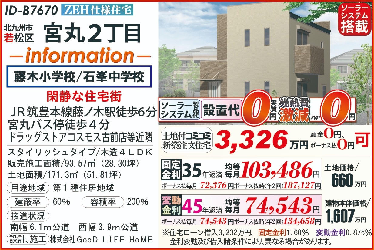 B7670宮丸2丁目、ZEH太陽光202511 こだわり条件 エリア 価格 校区 新エネルギーシステム住宅 北九州市若松区 3,326万円 藤木小 石峯中 【販売概要】土地+建物本体+ご提案住宅機器+敷地内上下水道工事+旧住宅基本解体工事+設計確認申請交付+消費税+さらに、オール電化+エコ給湯+ペアサッシ+高気密&高断熱+高耐震+GOODデザイン[含まれて無い物]外構工事+土木擁壁工事+敷地外給排水工事+銀行経費+登記費用+火災保険 この物件について問い合わせ 資料請求・ご質問等ございましたら、お気軽にお問い合わせください。 お名前必須 メールアドレス必須 お電話番号必須 ご住所必須 郵便番号 都道府県 都道府県 北海道 青森県 岩手県 宮城県 秋田県 山形県 福島県 茨城県 栃木県 群馬県 埼玉県 千葉県 東京都 神奈川県 新潟県 富山県 石川県 福井県 山梨県 長野県 岐阜県 静岡県 愛知県 三重県 滋賀県 京都府 大阪府 兵庫県 奈良県 和歌山県 鳥取県 島根県 岡山県 広島県 山口県 徳島県 香川県 愛媛県 高知県 福岡県 佐賀県 長崎県 熊本県 大分県 宮崎県 鹿児島県 沖縄県 市区町村、番地 建物名 郵便番号が入力されていません。 都道府県が選択されていません。 市区町村、番地が入力されていません。 お問い合わせ内容必須