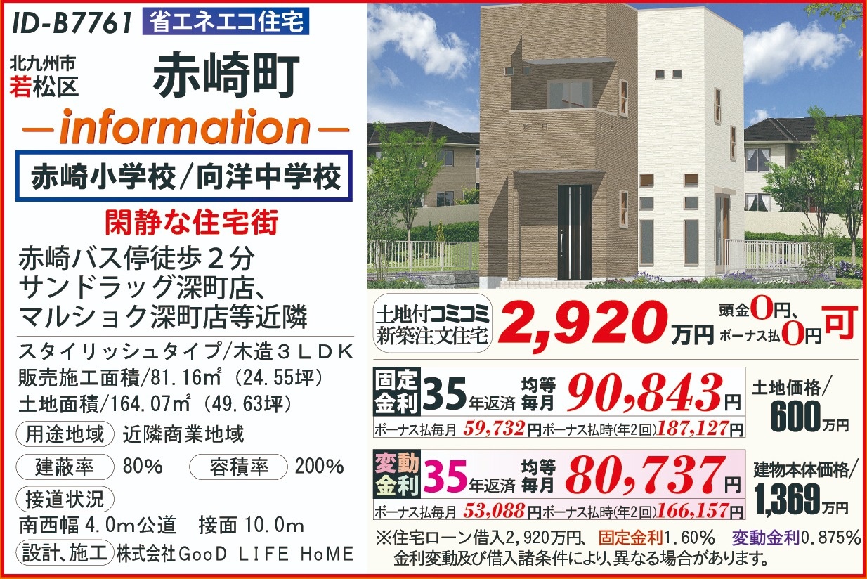 B7761赤崎町202511 こだわり条件 エリア 価格 校区 20代からの家づくり 北九州市若松区 2,920万円 赤崎小 向洋中 【販売概要】土地+建物本体+ご提案住宅機器+敷地内上下水道工事+旧住宅基本解体工事+設計確認申請交付+消費税+さらに、オール電化+エコ給湯+ペアサッシ+高気密&高断熱+高耐震+GOODデザイン[含まれて無い物]外構工事+土木擁壁工事+敷地外給排水工事+銀行経費+登記費用+火災保険 この物件について問い合わせ 資料請求・ご質問等ございましたら、お気軽にお問い合わせください。 お名前必須 メールアドレス必須 お電話番号必須 ご住所必須 郵便番号 都道府県 都道府県 北海道 青森県 岩手県 宮城県 秋田県 山形県 福島県 茨城県 栃木県 群馬県 埼玉県 千葉県 東京都 神奈川県 新潟県 富山県 石川県 福井県 山梨県 長野県 岐阜県 静岡県 愛知県 三重県 滋賀県 京都府 大阪府 兵庫県 奈良県 和歌山県 鳥取県 島根県 岡山県 広島県 山口県 徳島県 香川県 愛媛県 高知県 福岡県 佐賀県 長崎県 熊本県 大分県 宮崎県 鹿児島県 沖縄県 市区町村、番地 建物名 郵便番号が入力されていません。 都道府県が選択されていません。 市区町村、番地が入力されていません。 お問い合わせ内容必須