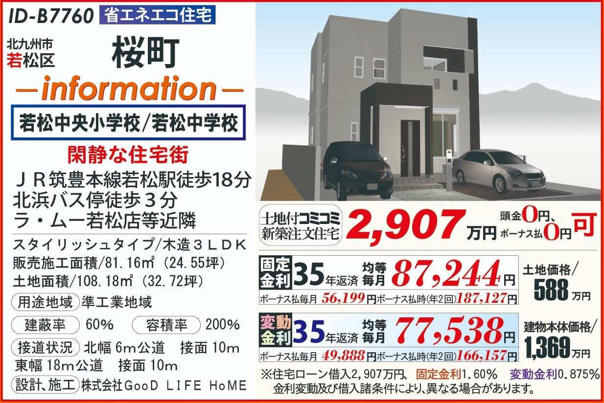 B7760桜町202511 こだわり条件 エリア 価格 校区 20代からの家づくり 北九州市若松区 2,907万円 若松中央小 若松中 【販売概要】土地+建物本体+ご提案住宅機器+敷地内上下水道工事+旧住宅基本解体工事+設計確認申請交付+消費税+さらに、オール電化+エコ給湯+ペアサッシ+高気密&高断熱+高耐震+GOODデザイン[含まれて無い物]外構工事+土木擁壁工事+敷地外給排水工事+銀行経費+登記費用+火災保険 この物件について問い合わせ 資料請求・ご質問等ございましたら、お気軽にお問い合わせください。 お名前必須 メールアドレス必須 お電話番号必須 ご住所必須 郵便番号 都道府県 都道府県 北海道 青森県 岩手県 宮城県 秋田県 山形県 福島県 茨城県 栃木県 群馬県 埼玉県 千葉県 東京都 神奈川県 新潟県 富山県 石川県 福井県 山梨県 長野県 岐阜県 静岡県 愛知県 三重県 滋賀県 京都府 大阪府 兵庫県 奈良県 和歌山県 鳥取県 島根県 岡山県 広島県 山口県 徳島県 香川県 愛媛県 高知県 福岡県 佐賀県 長崎県 熊本県 大分県 宮崎県 鹿児島県 沖縄県 市区町村、番地 建物名 郵便番号が入力されていません。 都道府県が選択されていません。 市区町村、番地が入力されていません。 お問い合わせ内容必須