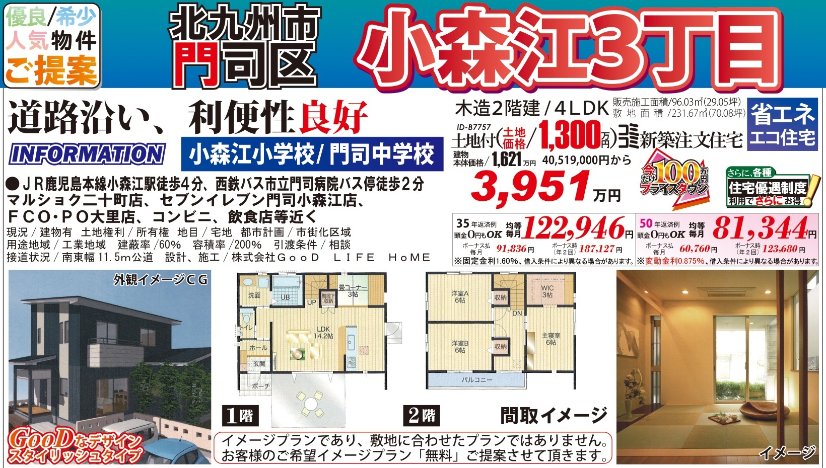 B7757小森江3丁目202511 こだわり条件 エリア 価格 校区 こだわり新築住宅 北九州市門司区 3,951万円 小森江小 門司中 【販売概要】土地+建物本体+ご提案住宅機器+敷地内上下水道工事+旧住宅基本解体工事+設計確認申請交付+消費税+さらに、オール電化+エコ給湯+ペアサッシ+高気密&高断熱+高耐震+GOODデザイン[含まれて無い物]外構工事+土木擁壁工事+敷地外給排水工事+銀行経費+登記費用+火災保険 この物件について問い合わせ 資料請求・ご質問等ございましたら、お気軽にお問い合わせください。 お名前必須 メールアドレス必須 お電話番号必須 ご住所必須 郵便番号 都道府県 都道府県 北海道 青森県 岩手県 宮城県 秋田県 山形県 福島県 茨城県 栃木県 群馬県 埼玉県 千葉県 東京都 神奈川県 新潟県 富山県 石川県 福井県 山梨県 長野県 岐阜県 静岡県 愛知県 三重県 滋賀県 京都府 大阪府 兵庫県 奈良県 和歌山県 鳥取県 島根県 岡山県 広島県 山口県 徳島県 香川県 愛媛県 高知県 福岡県 佐賀県 長崎県 熊本県 大分県 宮崎県 鹿児島県 沖縄県 市区町村、番地 建物名 郵便番号が入力されていません。 都道府県が選択されていません。 市区町村、番地が入力されていません。 お問い合わせ内容必須