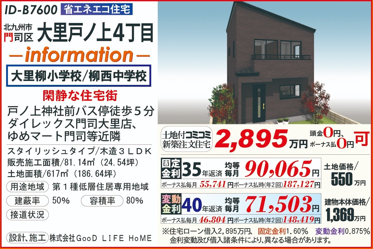 B7600大里戸ノ上4丁目202511 こだわり条件 エリア 価格 校区 20代からの家づくり 北九州市門司区 2,895万円 西門司小 緑丘中 【販売概要】土地+建物本体+ご提案住宅機器+敷地内上下水道工事+旧住宅基本解体工事+設計確認申請交付+消費税+さらに、オール電化+エコ給湯+ペアサッシ+高気密&高断熱+高耐震+GOODデザイン[含まれて無い物]外構工事+土木擁壁工事+敷地外給排水工事+銀行経費+登記費用+火災保険 この物件について問い合わせ 資料請求・ご質問等ございましたら、お気軽にお問い合わせください。 お名前必須 メールアドレス必須 お電話番号必須 ご住所必須 郵便番号 都道府県 都道府県 北海道 青森県 岩手県 宮城県 秋田県 山形県 福島県 茨城県 栃木県 群馬県 埼玉県 千葉県 東京都 神奈川県 新潟県 富山県 石川県 福井県 山梨県 長野県 岐阜県 静岡県 愛知県 三重県 滋賀県 京都府 大阪府 兵庫県 奈良県 和歌山県 鳥取県 島根県 岡山県 広島県 山口県 徳島県 香川県 愛媛県 高知県 福岡県 佐賀県 長崎県 熊本県 大分県 宮崎県 鹿児島県 沖縄県 市区町村、番地 建物名 郵便番号が入力されていません。 都道府県が選択されていません。 市区町村、番地が入力されていません。 お問い合わせ内容必須