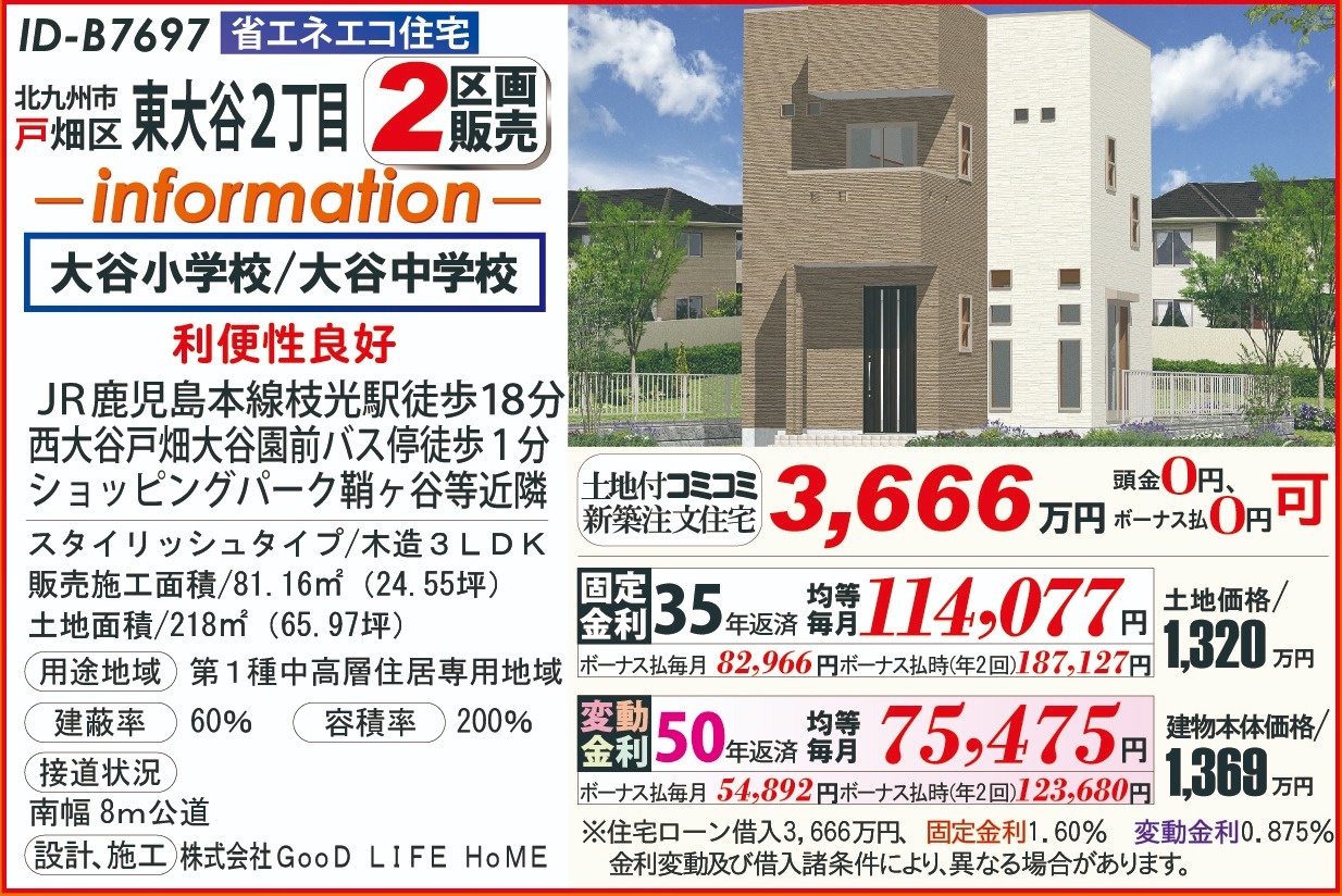B7697東大谷2丁目、2区画202511 こだわり条件 エリア 価格 校区 20代からの家づくり 北九州市戸畑区 3,666万円 大谷小 大谷中 【販売概要】土地+建物本体+ご提案住宅機器+敷地内上下水道工事+旧住宅基本解体工事+設計確認申請交付+消費税+さらに、オール電化+エコ給湯+ペアサッシ+高気密&高断熱+高耐震+GOODデザイン[含まれて無い物]外構工事+土木擁壁工事+敷地外給排水工事+銀行経費+登記費用+火災保険 この物件について問い合わせ 資料請求・ご質問等ございましたら、お気軽にお問い合わせください。 お名前必須 メールアドレス必須 お電話番号必須 ご住所必須 郵便番号 都道府県 都道府県 北海道 青森県 岩手県 宮城県 秋田県 山形県 福島県 茨城県 栃木県 群馬県 埼玉県 千葉県 東京都 神奈川県 新潟県 富山県 石川県 福井県 山梨県 長野県 岐阜県 静岡県 愛知県 三重県 滋賀県 京都府 大阪府 兵庫県 奈良県 和歌山県 鳥取県 島根県 岡山県 広島県 山口県 徳島県 香川県 愛媛県 高知県 福岡県 佐賀県 長崎県 熊本県 大分県 宮崎県 鹿児島県 沖縄県 市区町村、番地 建物名 郵便番号が入力されていません。 都道府県が選択されていません。 市区町村、番地が入力されていません。 お問い合わせ内容必須