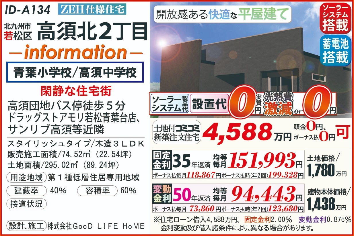 A134高須北2丁目、ZEH太陽光、蓄電池、平屋、202603 こだわり条件 エリア 価格 校区 新エネルギーシステム住宅 北九州市若松区 4,588万円 青葉小 高須中 【販売概要】土地+建物本体+ご提案住宅機器+敷地内上下水道工事+旧住宅基本解体工事+設計確認申請交付+消費税+さらに、オール電化+エコ給湯+ペアサッシ+高気密&高断熱+高耐震+GOODデザイン[含まれて無い物]外構工事+土木擁壁工事+敷地外給排水工事+銀行経費+登記費用+火災保険 この物件について問い合わせ 資料請求・ご質問等ございましたら、お気軽にお問い合わせください。 お名前必須 メールアドレス必須 お電話番号必須 ご住所必須 郵便番号 都道府県 都道府県 北海道 青森県 岩手県 宮城県 秋田県 山形県 福島県 茨城県 栃木県 群馬県 埼玉県 千葉県 東京都 神奈川県 新潟県 富山県 石川県 福井県 山梨県 長野県 岐阜県 静岡県 愛知県 三重県 滋賀県 京都府 大阪府 兵庫県 奈良県 和歌山県 鳥取県 島根県 岡山県 広島県 山口県 徳島県 香川県 愛媛県 高知県 福岡県 佐賀県 長崎県 熊本県 大分県 宮崎県 鹿児島県 沖縄県 市区町村、番地 建物名 郵便番号が入力されていません。 都道府県が選択されていません。 市区町村、番地が入力されていません。 お問い合わせ内容必須