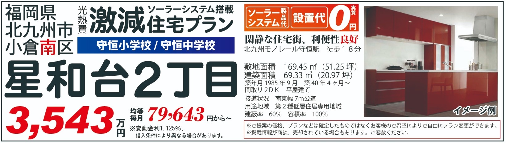 星和台2丁目リノベーション202602 エリア 価格 校区 北九州市小倉南区 3,543万円 守恒小 守恒中 ※ご提案の価格、プランなどは確定したものではなくお客様のご希望によりご自由にプラン変更ができます。 ※掲載情報が商談、売却されている場合もあります。ご容赦ください。 この物件について問い合わせ 資料請求・ご質問等ございましたら、お気軽にお問い合わせください。 お名前必須 メールアドレス必須 お電話番号必須 ご住所必須 郵便番号 都道府県 都道府県 北海道 青森県 岩手県 宮城県 秋田県 山形県 福島県 茨城県 栃木県 群馬県 埼玉県 千葉県 東京都 神奈川県 新潟県 富山県 石川県 福井県 山梨県 長野県 岐阜県 静岡県 愛知県 三重県 滋賀県 京都府 大阪府 兵庫県 奈良県 和歌山県 鳥取県 島根県 岡山県 広島県 山口県 徳島県 香川県 愛媛県 高知県 福岡県 佐賀県 長崎県 熊本県 大分県 宮崎県 鹿児島県 沖縄県 市区町村、番地 建物名 郵便番号が入力されていません。 都道府県が選択されていません。 市区町村、番地が入力されていません。 お問い合わせ内容必須