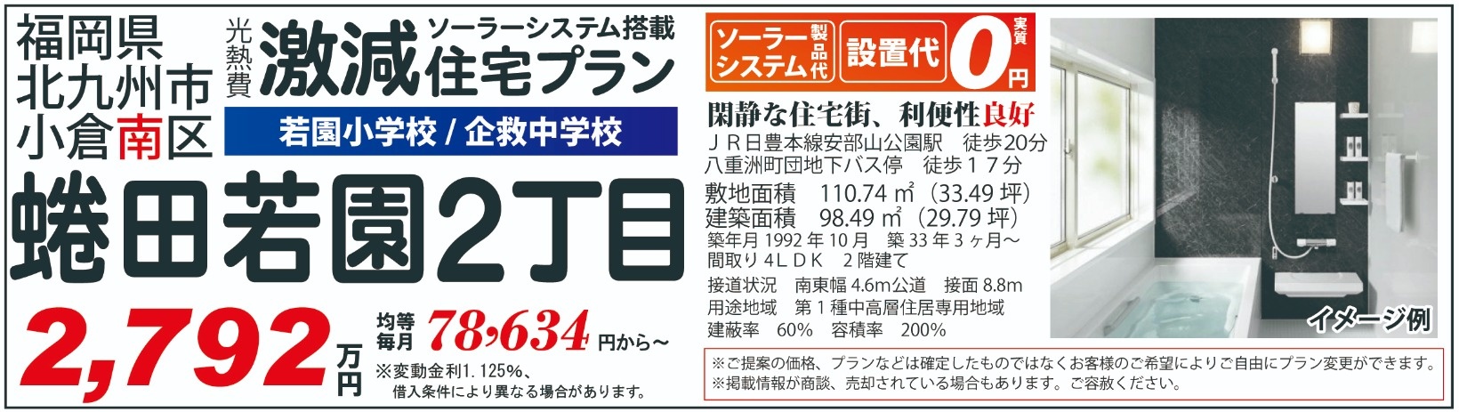蜷田若園2丁目リノベーション202602 エリア 価格 校区 北九州市小倉南区 2,792万円 若園小 企救中 ※ご提案の価格、プランなどは確定したものではなくお客様のご希望によりご自由にプラン変更ができます。 ※掲載情報が商談、売却されている場合もあります。ご容赦ください。 この物件について問い合わせ 資料請求・ご質問等ございましたら、お気軽にお問い合わせください。 お名前必須 メールアドレス必須 お電話番号必須 ご住所必須 郵便番号 都道府県 都道府県 北海道 青森県 岩手県 宮城県 秋田県 山形県 福島県 茨城県 栃木県 群馬県 埼玉県 千葉県 東京都 神奈川県 新潟県 富山県 石川県 福井県 山梨県 長野県 岐阜県 静岡県 愛知県 三重県 滋賀県 京都府 大阪府 兵庫県 奈良県 和歌山県 鳥取県 島根県 岡山県 広島県 山口県 徳島県 香川県 愛媛県 高知県 福岡県 佐賀県 長崎県 熊本県 大分県 宮崎県 鹿児島県 沖縄県 市区町村、番地 建物名 郵便番号が入力されていません。 都道府県が選択されていません。 市区町村、番地が入力されていません。 お問い合わせ内容必須